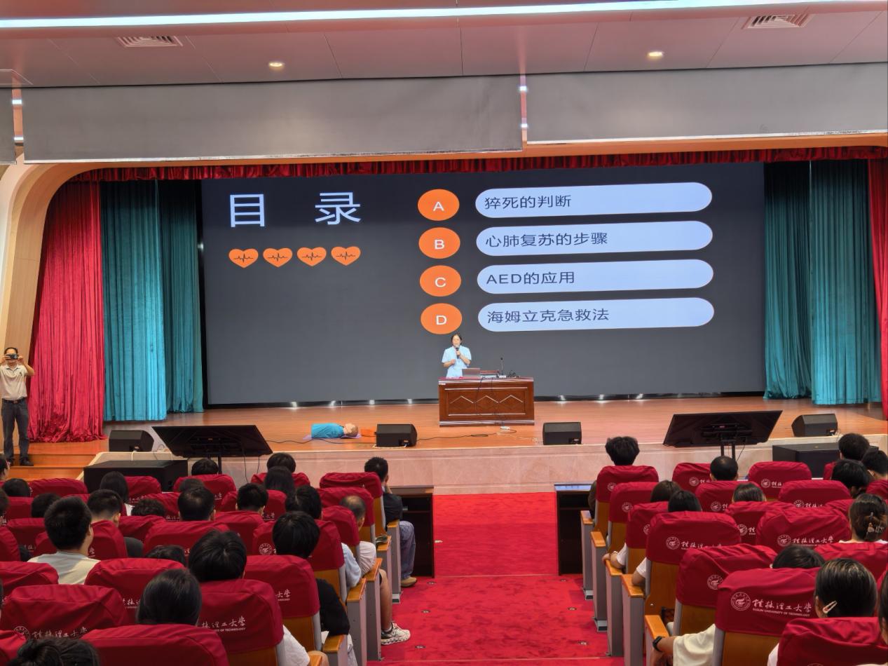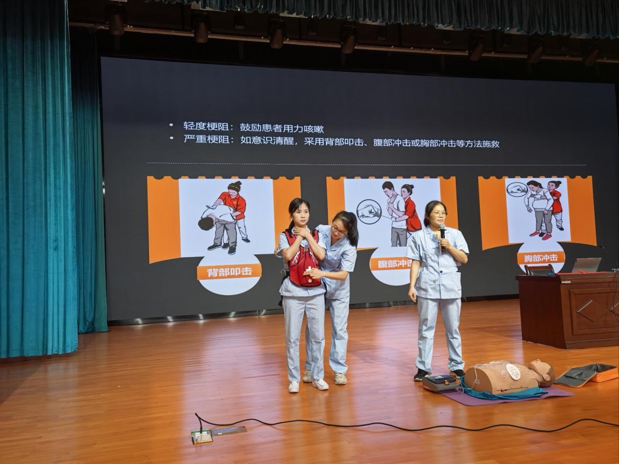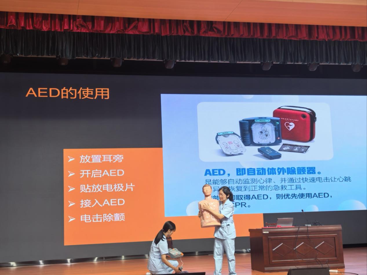 培训内容涵盖心肺复苏(CPR)、AED使用及气道异物梗阻处理等核心技能。特别强调心脏骤停“黄金四分钟”抢救期内,规范实施急救技术对挽救生命的关键意义,帮助学生深刻认识急救操作的重要性与紧迫性。