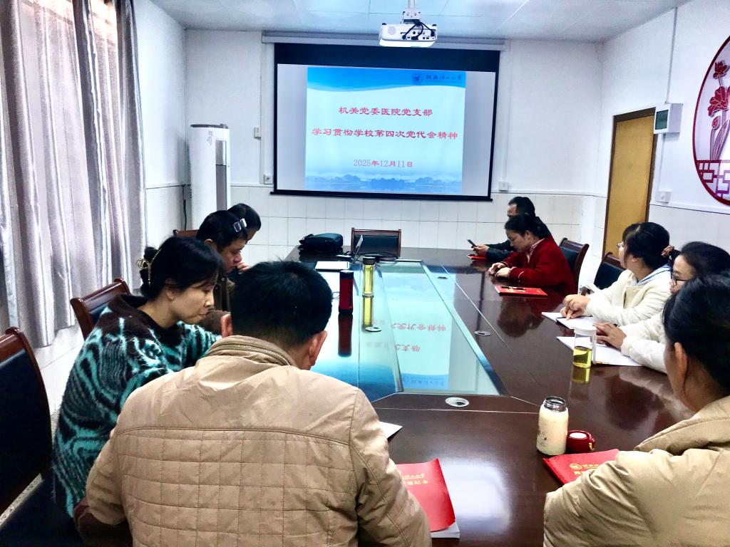 12月11日下午,校医院党支部在屏风校区会议室召开专题会议,深入学习贯彻学校第四次党代会精神。会议由戚武同志主持,校医院党支部全体党员参加会议。